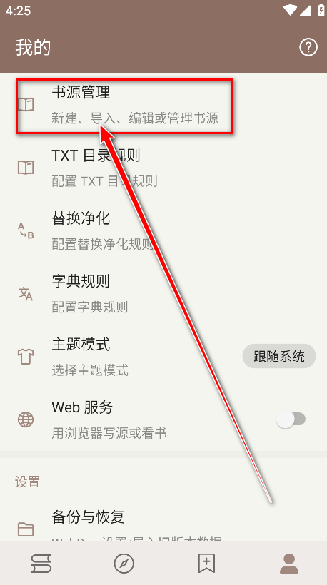2.点击书源管理。