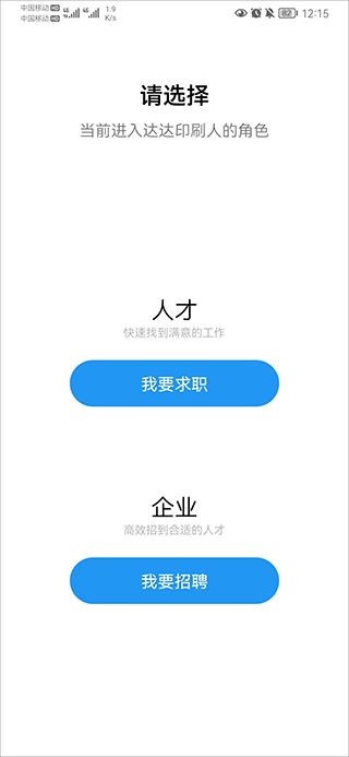 1.进入达达印刷人才网app后,首先选择求职或招聘登录。