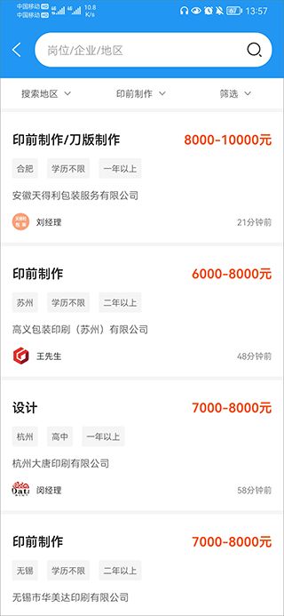 达达印刷人才网是一款专注于印刷行业的移动端求职招聘平台,应用通过强化技术架构与完善交互功能,显著提升了系统的流畅性与可靠性。平台还引入了即时沟通模块,让招聘方与求职者能够直接对话,从而大幅缩短了沟通链路,使招聘求职过程更为顺畅高效。用户还可借助社交分享机制,将招聘信息快速扩散至人际网络,进一步拓展招聘覆盖面。