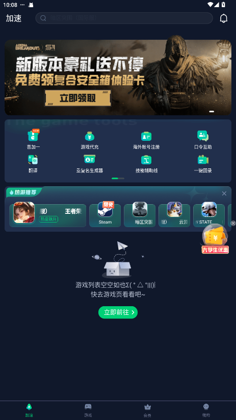1.打开加速器,点击游戏。