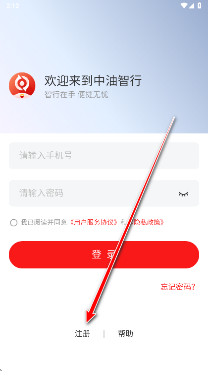 2.请输入手机号码,勾选我已阅读并同意《用户服务协议》和《隐私政策》。再点击获取验证码。