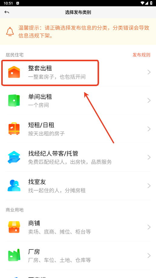 3.选择你的租房类别。