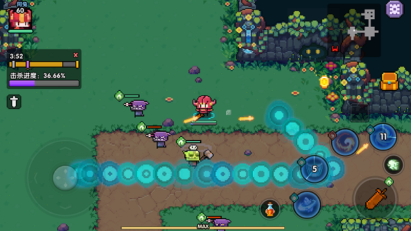 玩家走过的路径会产生一条障碍,所有的敌人在障碍上都会被减速!