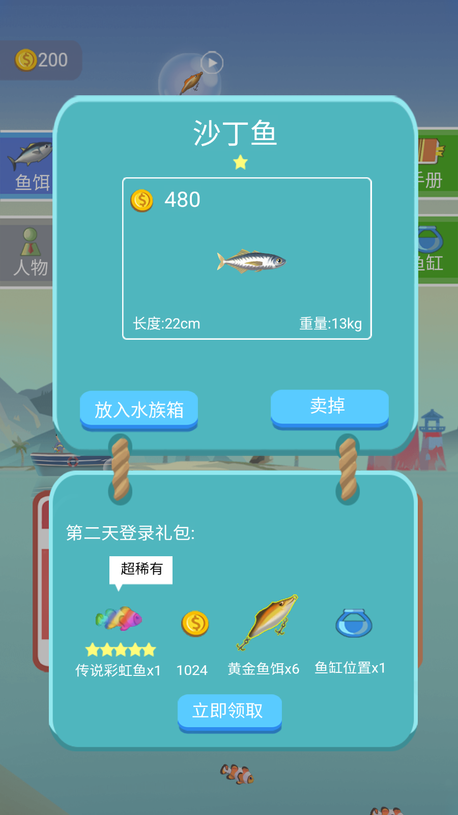 卡通的游戏风格,随机出现的珍稀鱼类,等着您来收集;