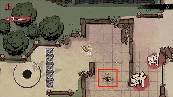 7、当人物身上标记了红色圈圈代表可以进行击杀,可以移动或者闪进靠近敌人进行击杀,
