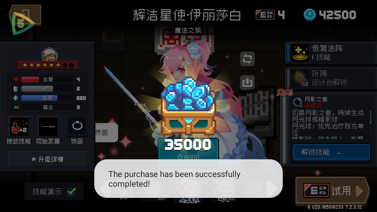 1.这款可以内购买皮肤,很多玩家说买不成,经过小编亲测可以购买,具体你进游戏要确保是有菜单显示的,进入游戏看左侧有没有一个5的标志,有的话点开开启所有功能。