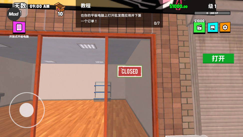 3、过一会货物就会运送到店门口,靠近后就能够拿起,然后点击打开。