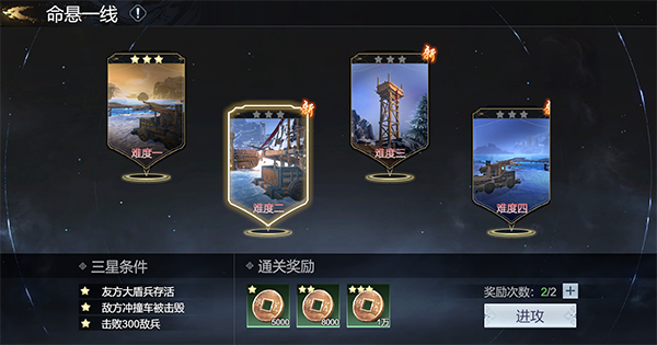通关方式:通过操纵弩车击退敌方士兵及冲撞车通关;