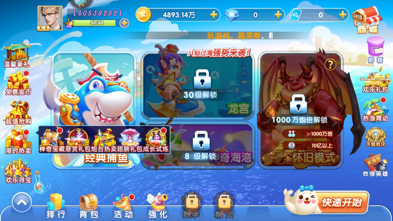 9.了解到这些之后我们就可以选择不同的渔场开始我们的捕鱼之旅了。