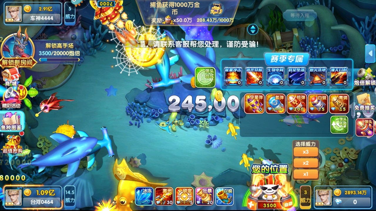 9.了解到这些之后我们就可以选择不同的渔场开始我们的捕鱼之旅了。