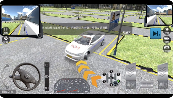驾考模拟老司机之路是一款深度还原真实学车体验的高精度模拟驾驶手游。游戏严格遵循最新版考规,通过第一人称视角和逼真的物理引擎,在手机端重现驾校练习与考试的每一个细节。核心玩法涵盖科目二(倒车入库、侧方停车等)与科目三(路考全流程)的实操练习。玩家可自由切换视角,在动态天气与复杂路况中磨炼车感,系统实时监测扣分项并提供专业指引。