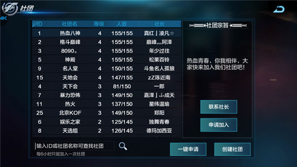 看了创建社团的过程相信很多小伙伴都对这1000钻石感到很难受(穷啊,没有这么多钻石呀),没关系,我们可以加入其他玩家创建的社团,系统给我们提供了两种加入方式,一种是一键申请,系统会自动帮我们选择一个社团并且加入。还有一种是我们自己选择一个喜欢的社团点击申请加入,然后等待审核。
