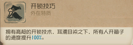 ② 由于“慈善家”外在特质“开锁癖”的开箱速度加成,有“慈善家”所在的对局内,无论是“慈善家”自身还是队友,都可以视对局情况开箱子运输或者交换道具继续牵制。