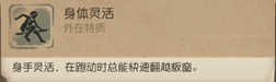 这套天赋的好处是“慈善家”的外在特质“身体灵活”能让他进行快速交互,配合“双弹+韦伯定律”的加速可以在无形之中消耗监管者的追击时间,延缓倒地节奏,为队友争取更多的破译时长。