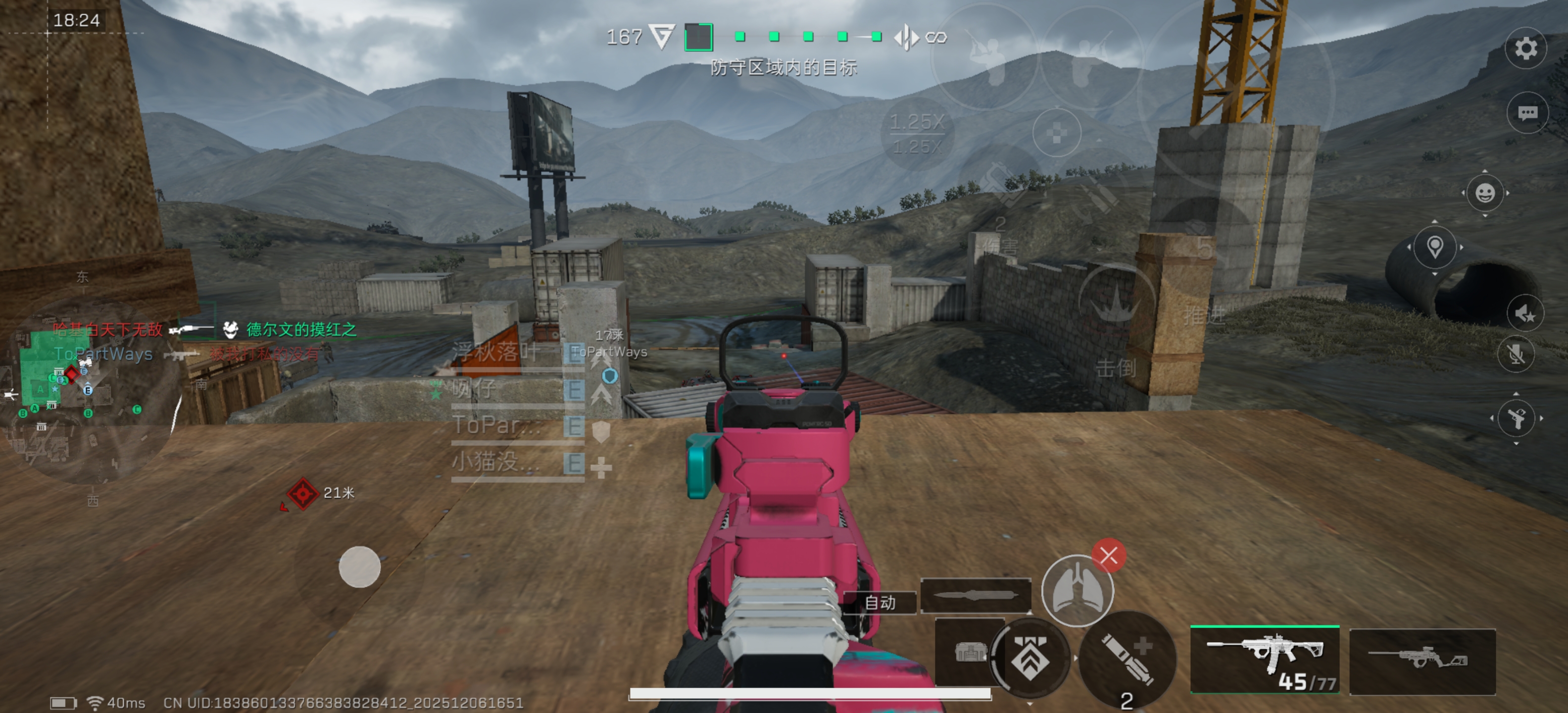 第一个点可以选择A点右侧的三层高楼楼顶。这个点通过版本迭代,拥有一个能够高打底的固定机枪,对点内拥有及佳的视野以及高效的火力输出。这个枪位可以由一个工程、一个医生进行防守还可以铺设ADS能够让两人的生存率稳步提升。