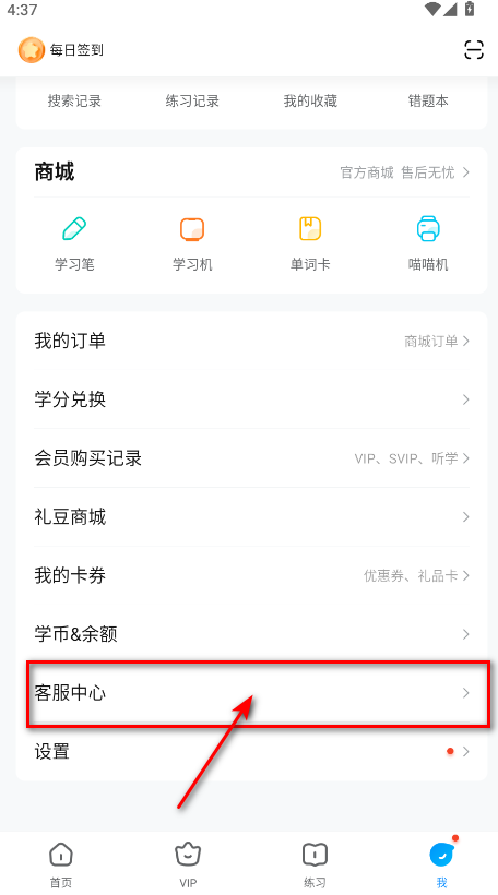 2.然后往下滑找到客服中心
