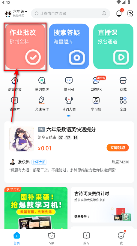 1.我们在首页直接点击作业批改