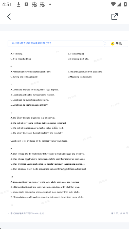 5.最后,按照顺序或随机练习题目,保持耐心和专注,坚持刷题,就能有效提升六级成绩。