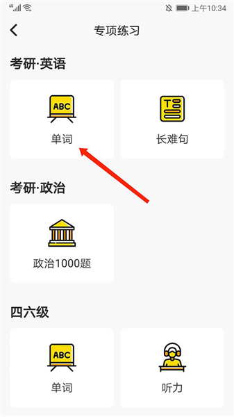 2.在选择页面中点击CET-6,进入六级试题专区。