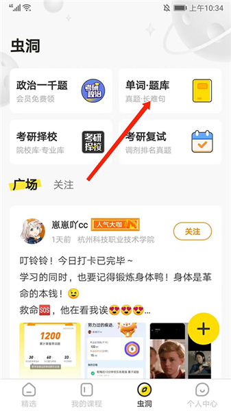 2.进入虫洞界面,然后选择“单词/题库”选项。