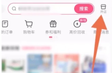 3、接下来进入到快手小店页面,点击右上角的【开店】图标;