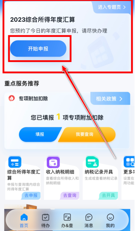 1.打开个人所得税进入首页并且登录,点击开始申报。