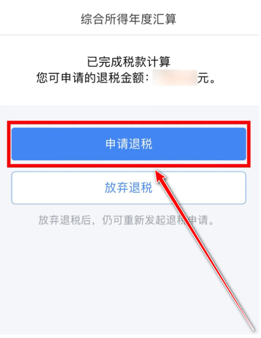 8.接着办理退税或者是补税,如果汇算结果为退税,您可以点击【申请退税】。