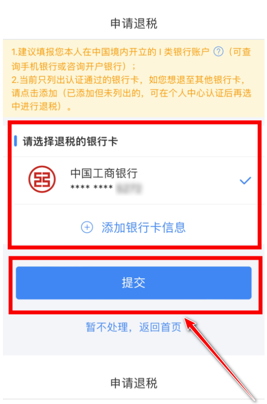 9.选择已绑定的银行卡或添加银行卡信息,点击【提交】。