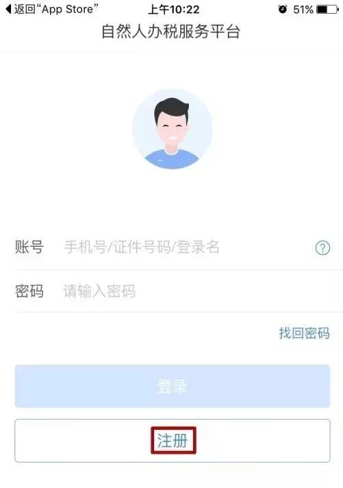 2.未注册用户选择“注册”,已注册用户可直接输入账号密码登录。