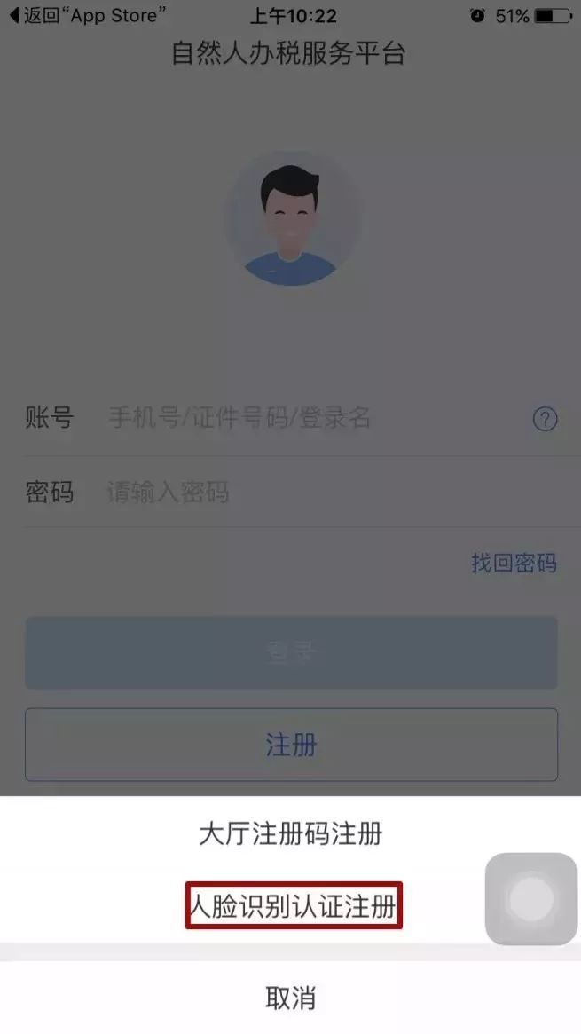 3.选择“人脸识别认证注册”,若选择“大厅注册码注册“需要纳税人携带有效身份证原件前往本地办税服务厅申请。