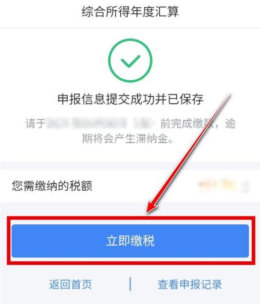 11.如果汇算结果为补税,您可以点击【立即缴税】。