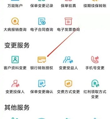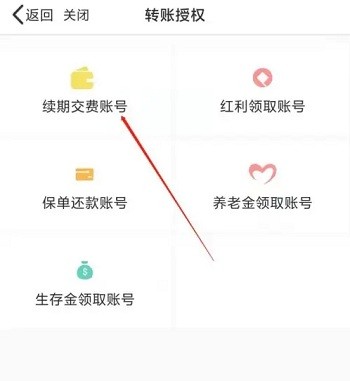 3.进入银行卡转账授权设置,点击【续期交费账号】