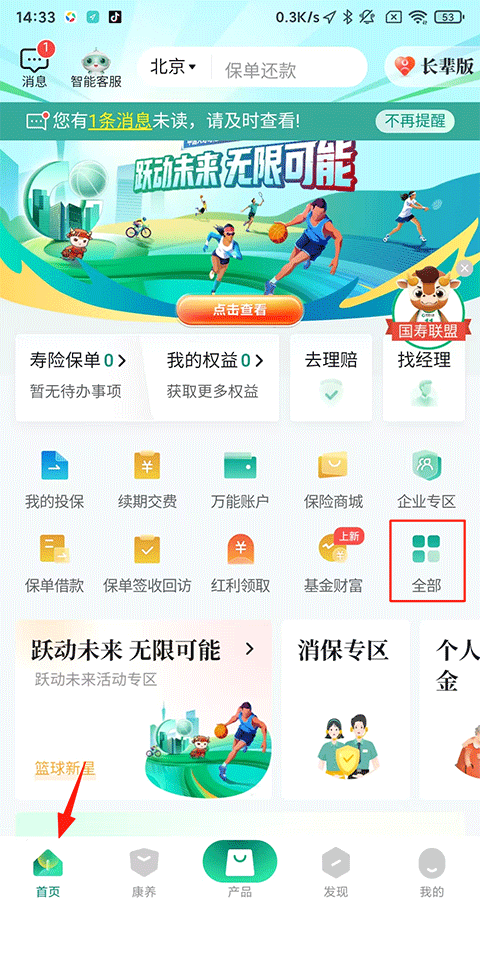 1.打开中国人寿寿险APP,点击首页中的“我的投保