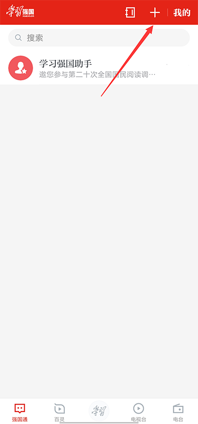 1、首先,打开手机上的“学习强国”。进入首页后,点击右上角的“+”号。