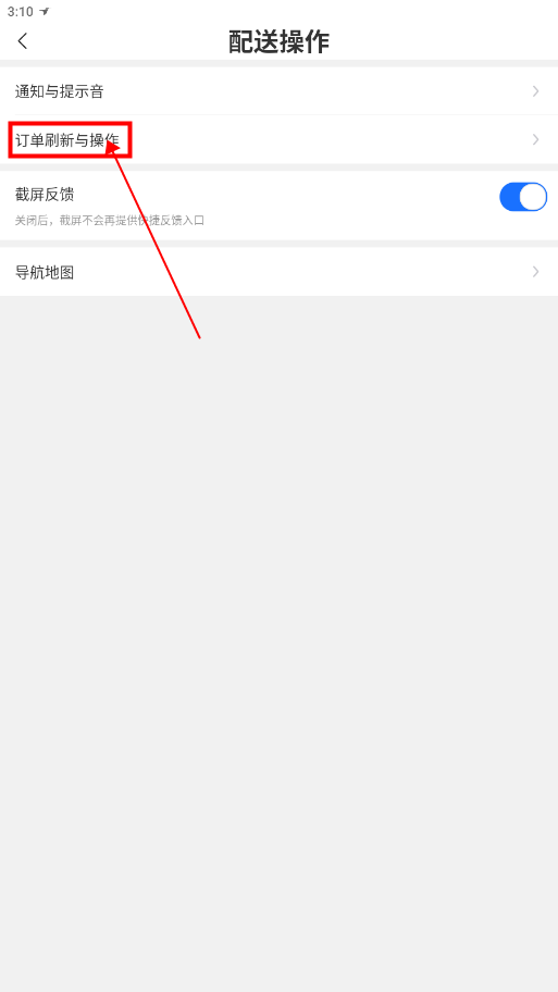 3.在“配送操作”页面中点击“订单刷新与操作”;