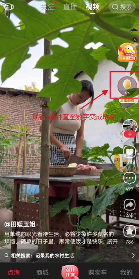 2、完成上面的操作后,你可以得1-7元,然后第二日,打开点淘APP观看直播1分钟,如上图,必得7元!
