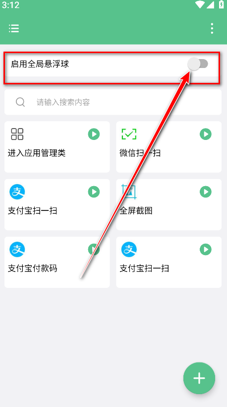 9.返回到首页,点击启用全局悬浮球后面的按钮。