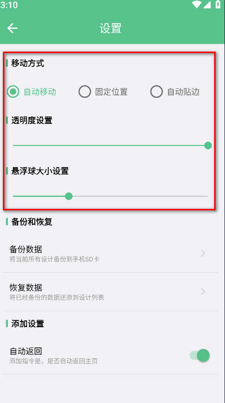 7.自定义调整悬浮球的各项参数。