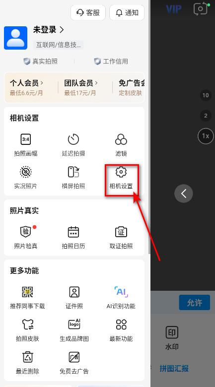 2.然后点击相机设置