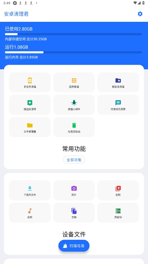 安卓清理君app是为安卓手机打造的一款非常好用的手机清理优化工具型软件。这款软件可以快速清理手机中的垃圾文件和缓存文件,提高手机运行速度,同时还可以帮助用户管理手机中的应用程序,方便使用。还有更多好用的功能等你下载体验!
