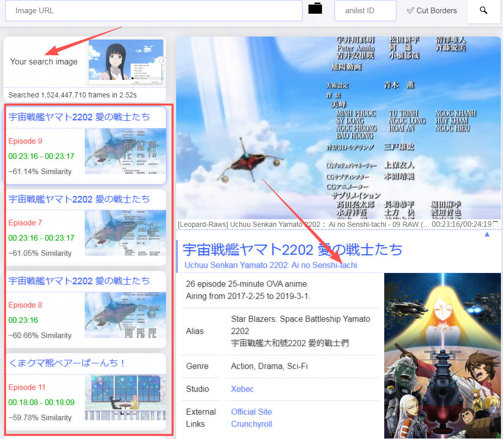 4、可以看到最终所查询的结果不仅有详细的时间年份,更有动漫出处的几分几秒,都包含在了其中非常具体。