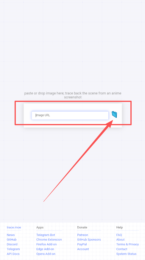 1、在本网站页面下载安装tracemoe软件并打开,在内容空白区域填入动漫识图的地址,或是在文件中添加想要进行识图查看的图片。