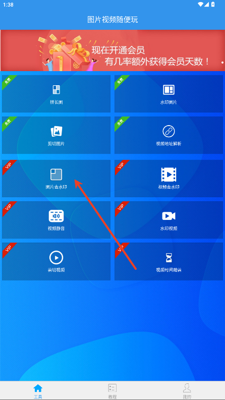 2.从相册选择一张图片,选择处理区域,点击一键去水印。