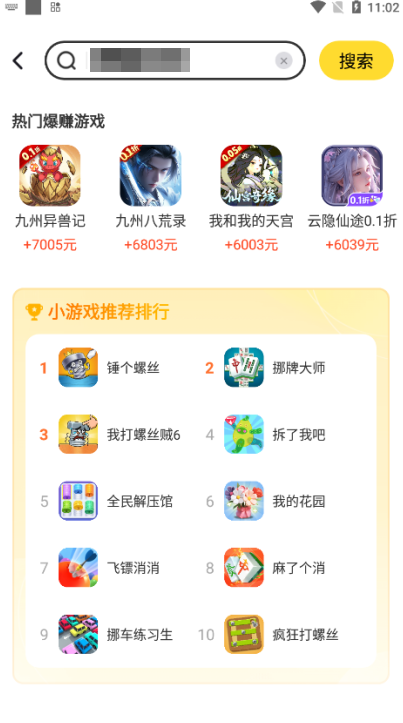 6.点击想玩的下载试玩,还可以直接搜索自己喜欢的游戏来进行游玩