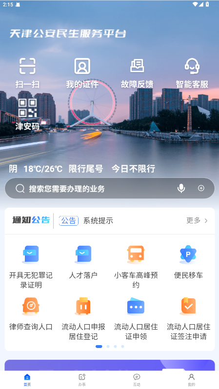 天津公安民生服务平台APP百姓端是一款集警务资讯与便民服务于一体的综合性应用。用户可随时获取警务动态、通知公告与警方报道,并便捷查询车辆违章、驾驶员记分、身份证及出入境证件办理进度。平台还提供走失人口、案件进展、司法鉴定、失物招领挂失等功能,满足市民多样化需求。通过实名认证,用户更可生成专属的公安大数据报告,让办事更高效,服务更贴心,全面提升民生体验。