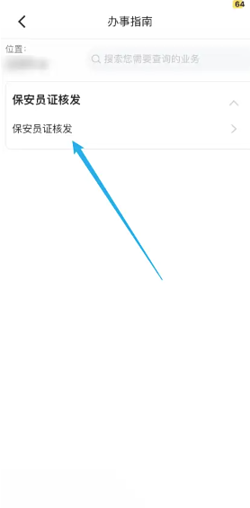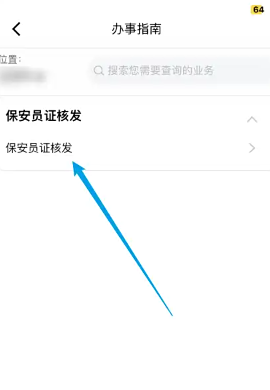 2、在保安员办事指南界面,点击【保安员证核发】进入。