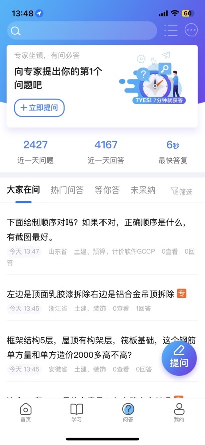 4、点开答疑,用户可以向专家提问,也可以查看热门问答;