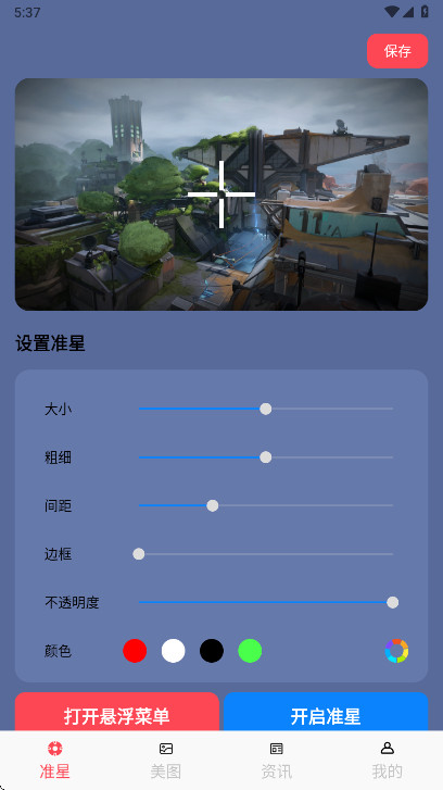 3、接着自定义设置好准星的大小,粗细,间距,边框以及不透明度等之后,点击“开启准星”。