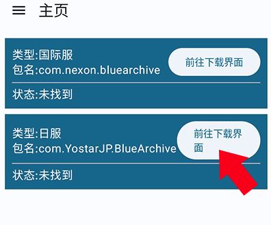 1、在主页点击“日服”右侧的【前往下载界面】按钮,进入日服下载页面。
