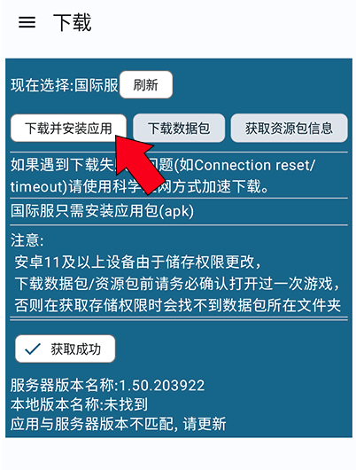 2、首先点击【下载并安装应用】,完成游戏主程序的安装。